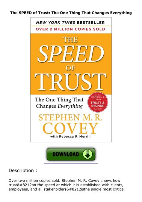 Download The SPEED of TRUST The One Thing That Changes Everything PDF online is a convenient and frugal way to read The SPEED of TRUST The One Thing That Changes Everything you love right from the comfort of your own home. Yes, there sites where you can get PDF "for free" but the ones listed below are clean from viruses and completely legal to use.